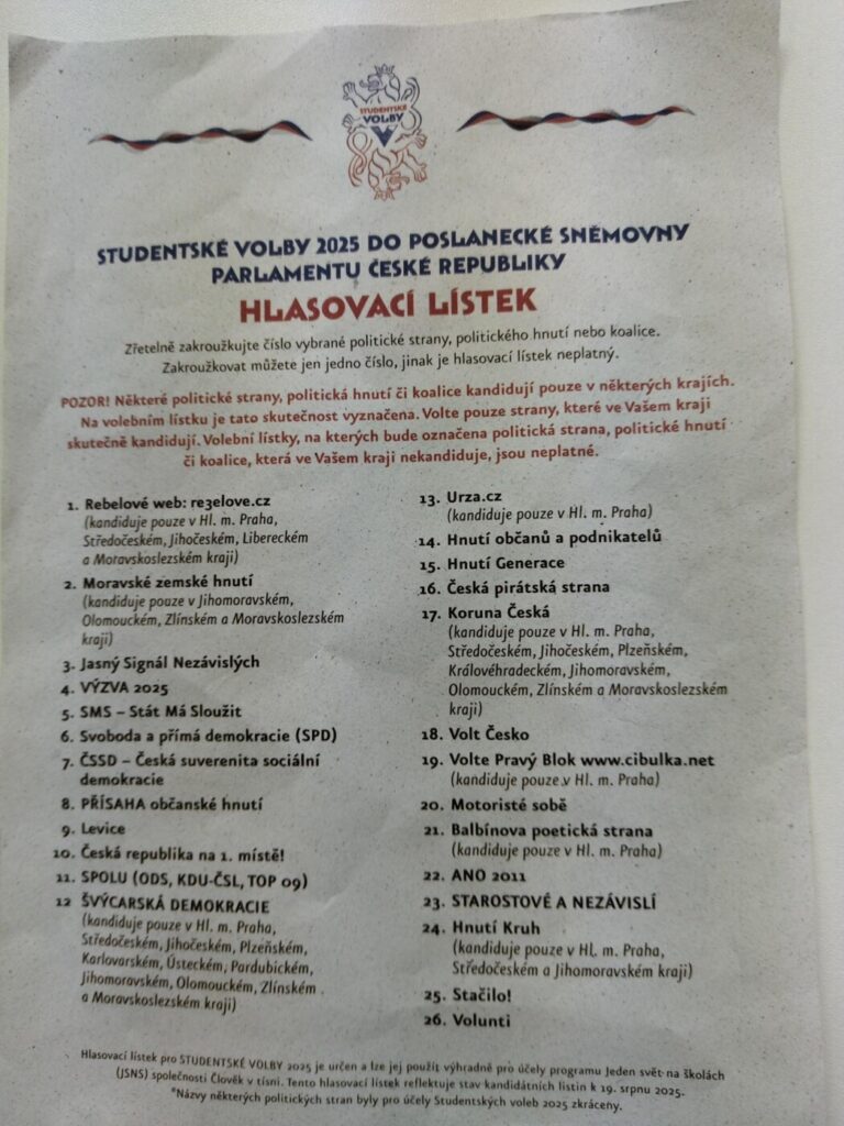 Studentské volby V tomto školním roce jsme se zapojili do celorepublikového projektu Studentské volby do Poslanecké sněmovny. Ve středu 17. září v nich tak mohou odevzdat svůj hlas všichni žáci SOŠ.